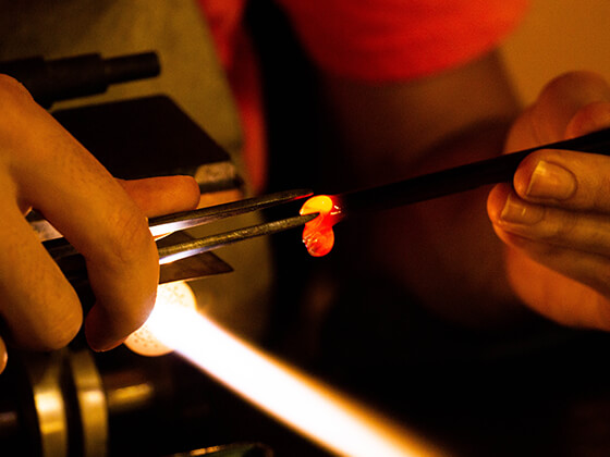 O cuidadoso manuseio do cristal, o maçarico como ferramenta e muita criatividade. Esses elementos resultam em delicadas miniaturas. A partir da técnica flamework, o artesão modela peças com formas e cores únicas.