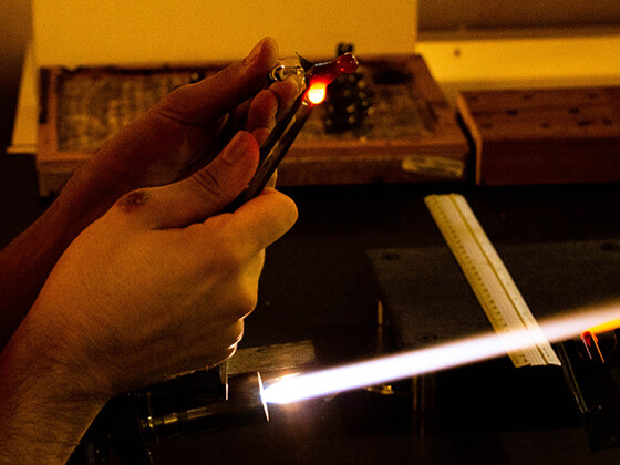 As miniaturas são modeladas com o calor do maçarico, a uma temperatura de 900 a 1.100 graus. Para manusear e dar forma aos bastões de cristal, são utilizadas ferramentas como pinças e tesouras.