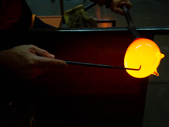 Técnica do Sopro – O artesão utiliza a cana (ferro de aço inoxidável) e com ela consegue colocar uma bolha de ar dentro do cristal maciço. Ele sopra de um lado da cana, o ar esquenta e expande, criando uma bolha de ar dentro do cristal – essa bolha de ar determina a parte oca da peça.