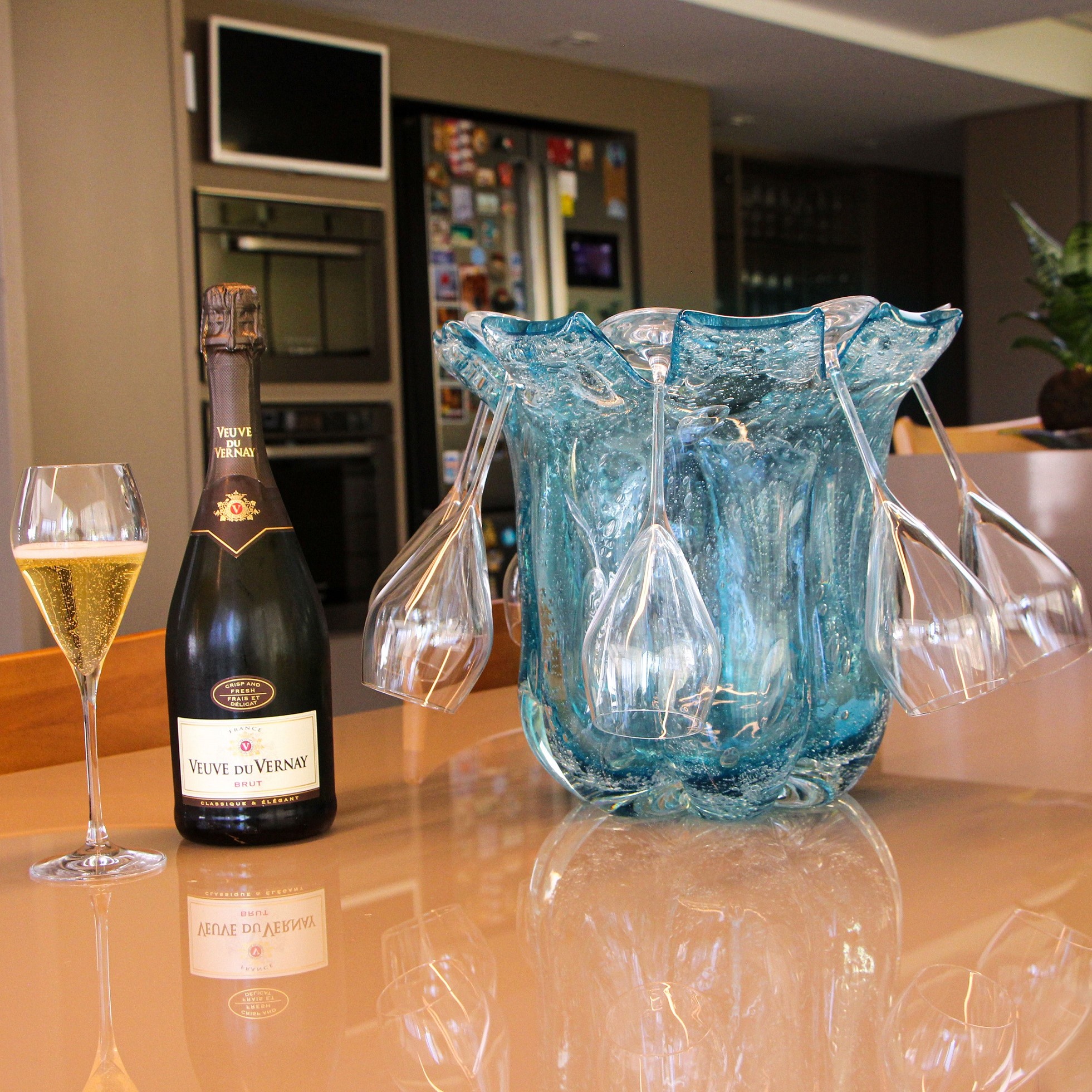 Com a finalidade de criar uma peça diferenciada e extremamente funcional, o olhar e a percepção técnica do artesão deram vida à Champanheira de Cristal. Para celebrar essa primeira década da criação, a Cristais de Gramado está lançando uma linha de champanheiras em variadas cores e técnicas. “Algumas das novas champanheiras contam com folha de ouro 18k na composição, conferindo ainda mais requinte e sofisticação à peça”, explica o CEO da Cristais de Gramado, Gustavo Fuchs.